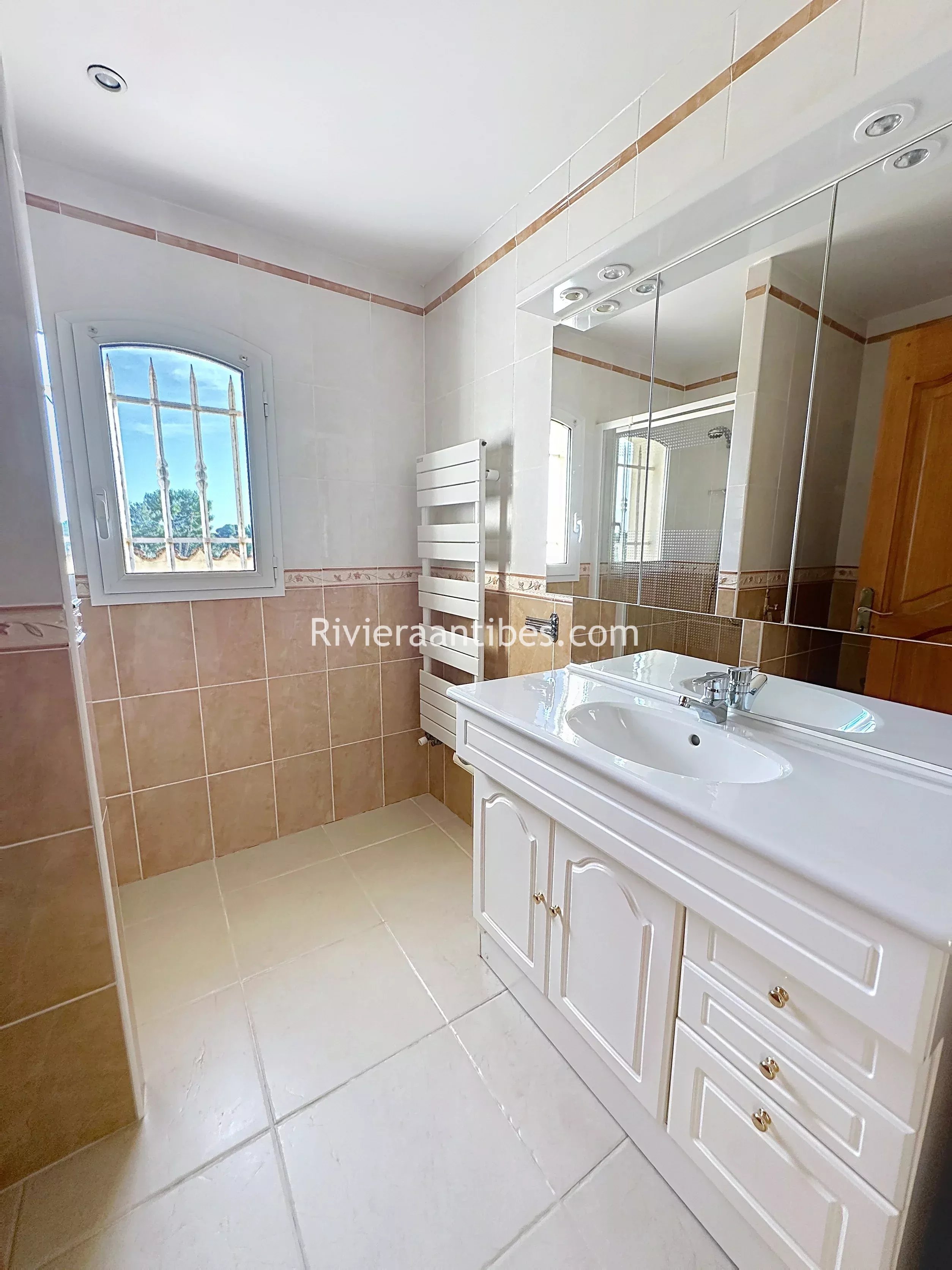 With a total area of 355 m² (including 244 m² of living space), it consists of a large 43 m² living room opening onto a sunny terrace. The house also offers two ground-floor bedrooms, a bathroom, a shower room, and two toilets.