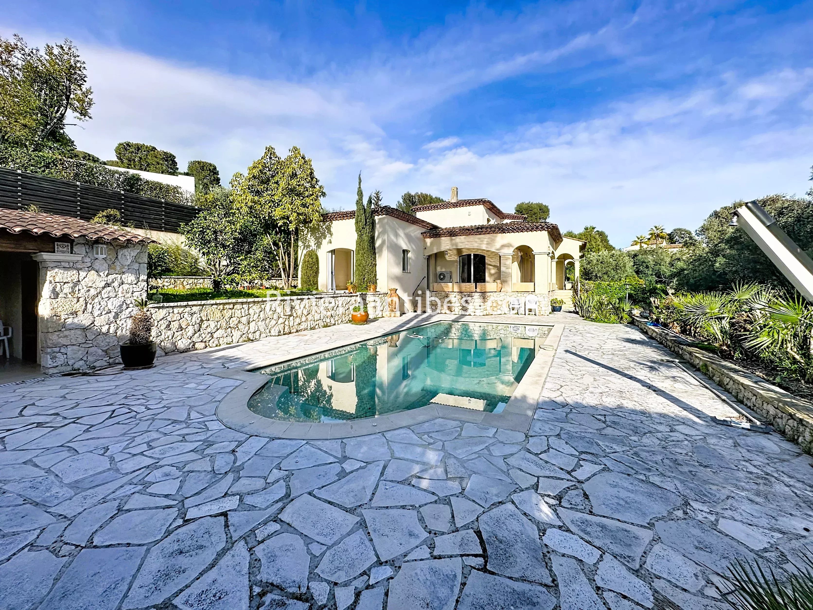 It is situated on a 1,776 m² plot of land with a garden, a swimming pool, and a pool house, ideal for fully enjoying the outdoors.